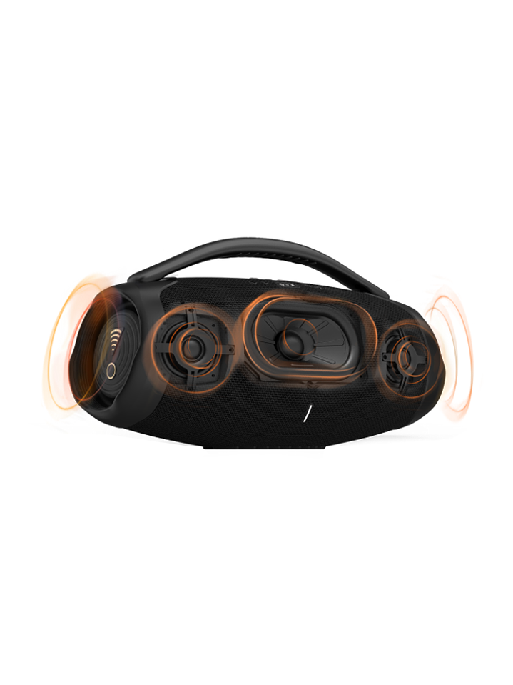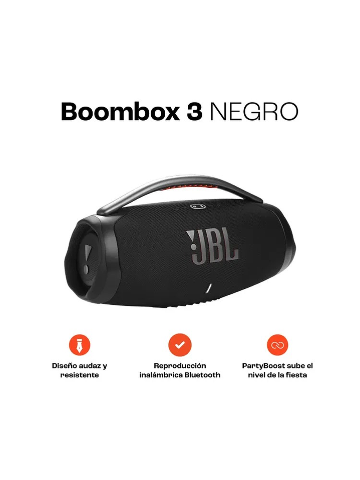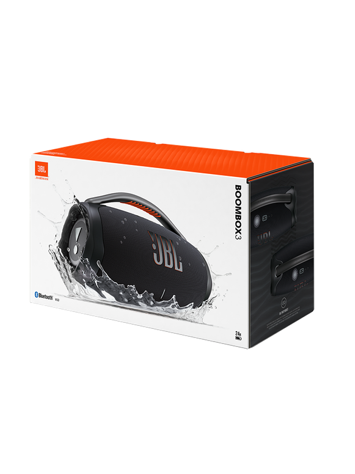 Con bajos profundos y un audio envolvente, el Boombox 3 lleva tus fiestas al siguiente nivel. Además, su diseño resistente al agua y al polvo (IP67) lo convierte en el compañero perfecto para la playa, piscina o aventuras al aire libre.